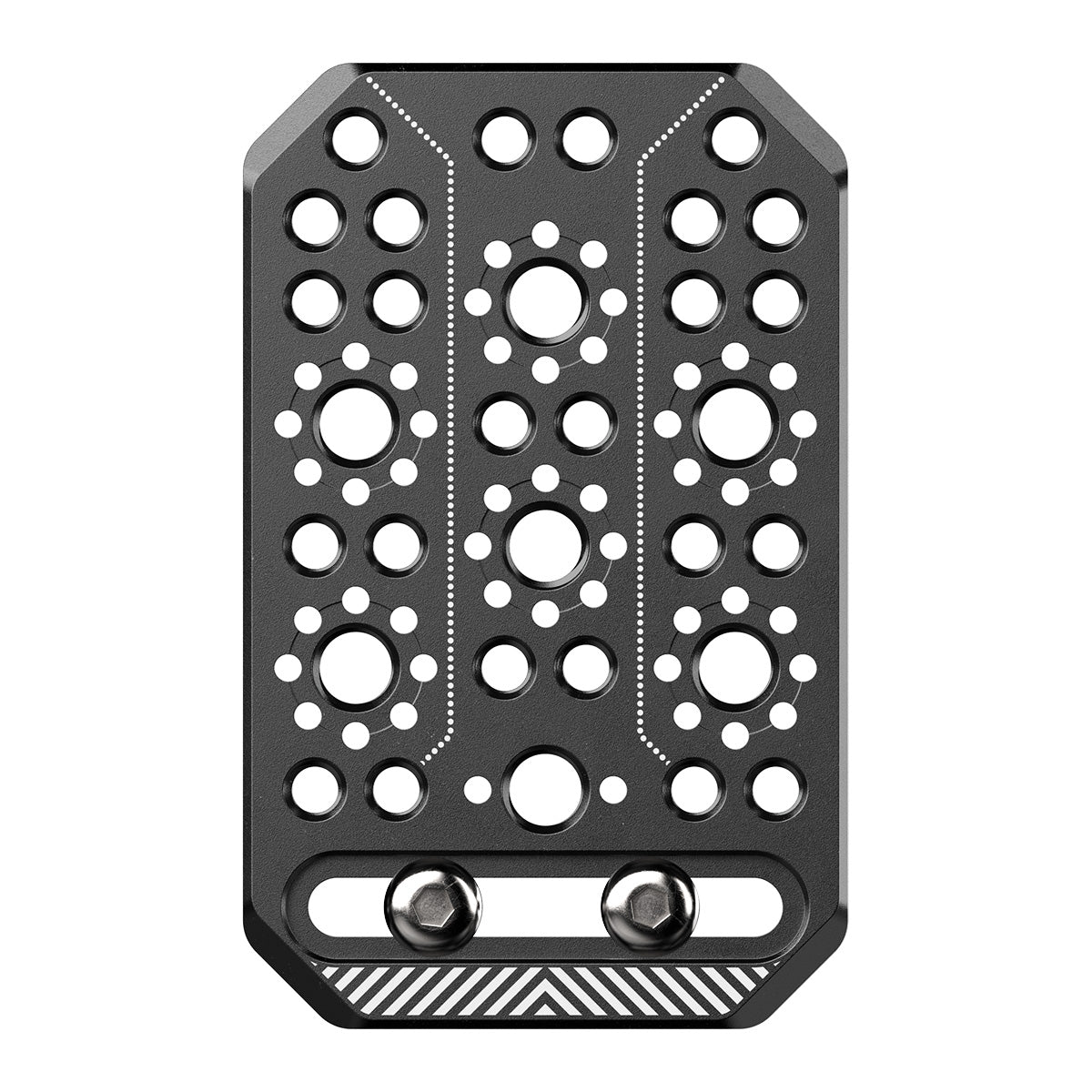 The 8Sinn Cheese Plate serves as a mounting base for a wide range of camera accessories. It features 24 x 1/4" threaded mounting points and seven 3/8" threaded points, all with locating pins built to the ARRI standard. This layout allows you to mount any compatible accessory- using 1/4" or 3/8" screws- in multiple configurations.